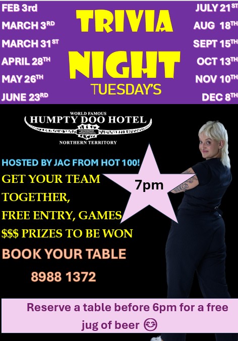 A legendary establishment that has been serving guests since September 11th, 1971. Proudly holding the title of the Northern Territory’s most extended continually licensed premises.